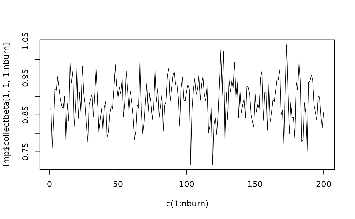 plot(c(1:nburn),imp$collectbeta[1,1,1:nburn],type="l")