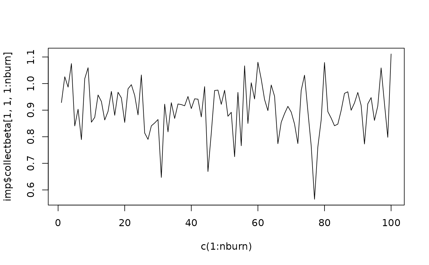 plot(c(1:nburn),imp$collectbeta[1,1,1:nburn],type="l")
