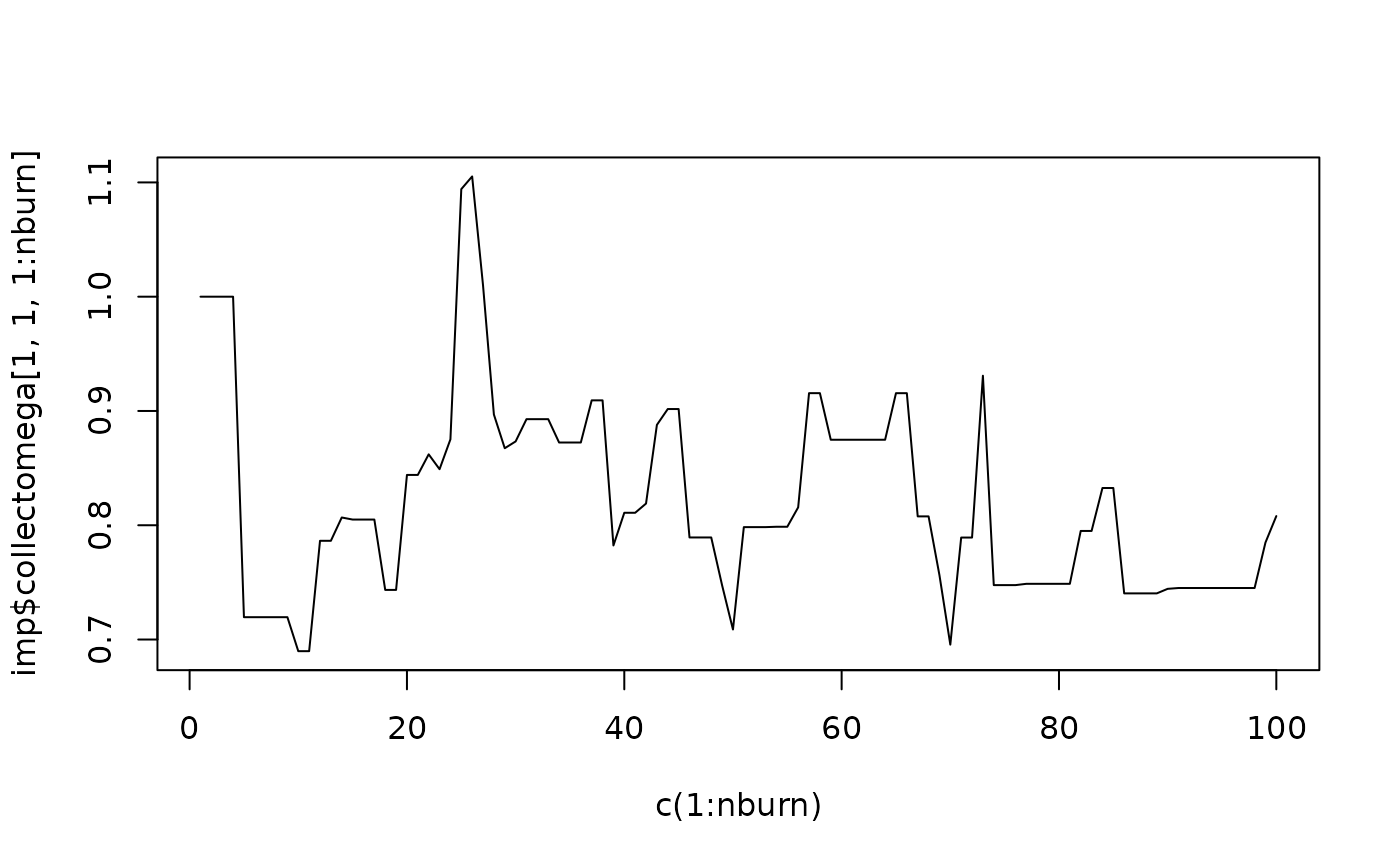plot(c(1:nburn),imp$collectomega[1,1,1:nburn],type="l")