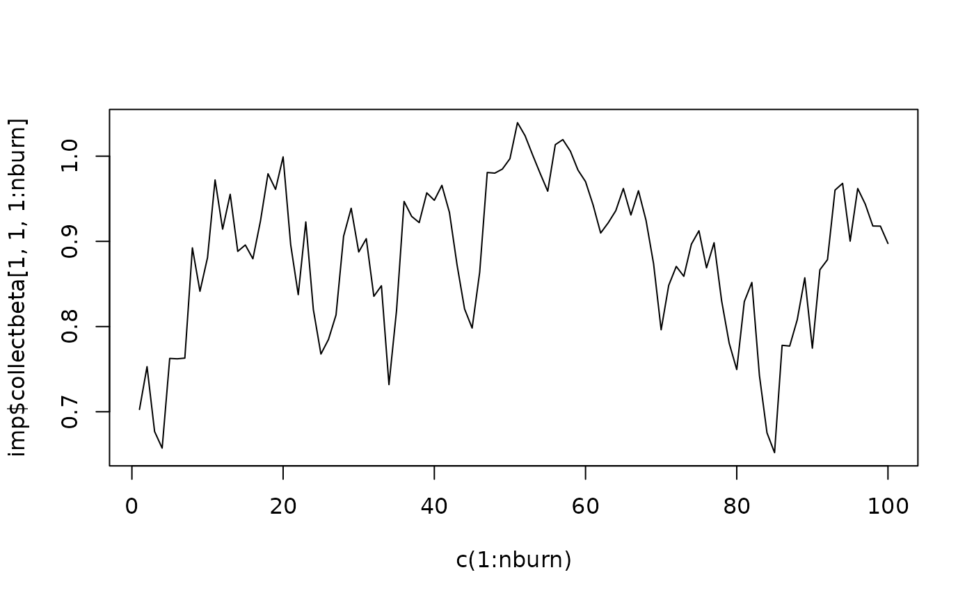 plot(c(1:nburn),imp$collectbeta[1,1,1:nburn],type="l")