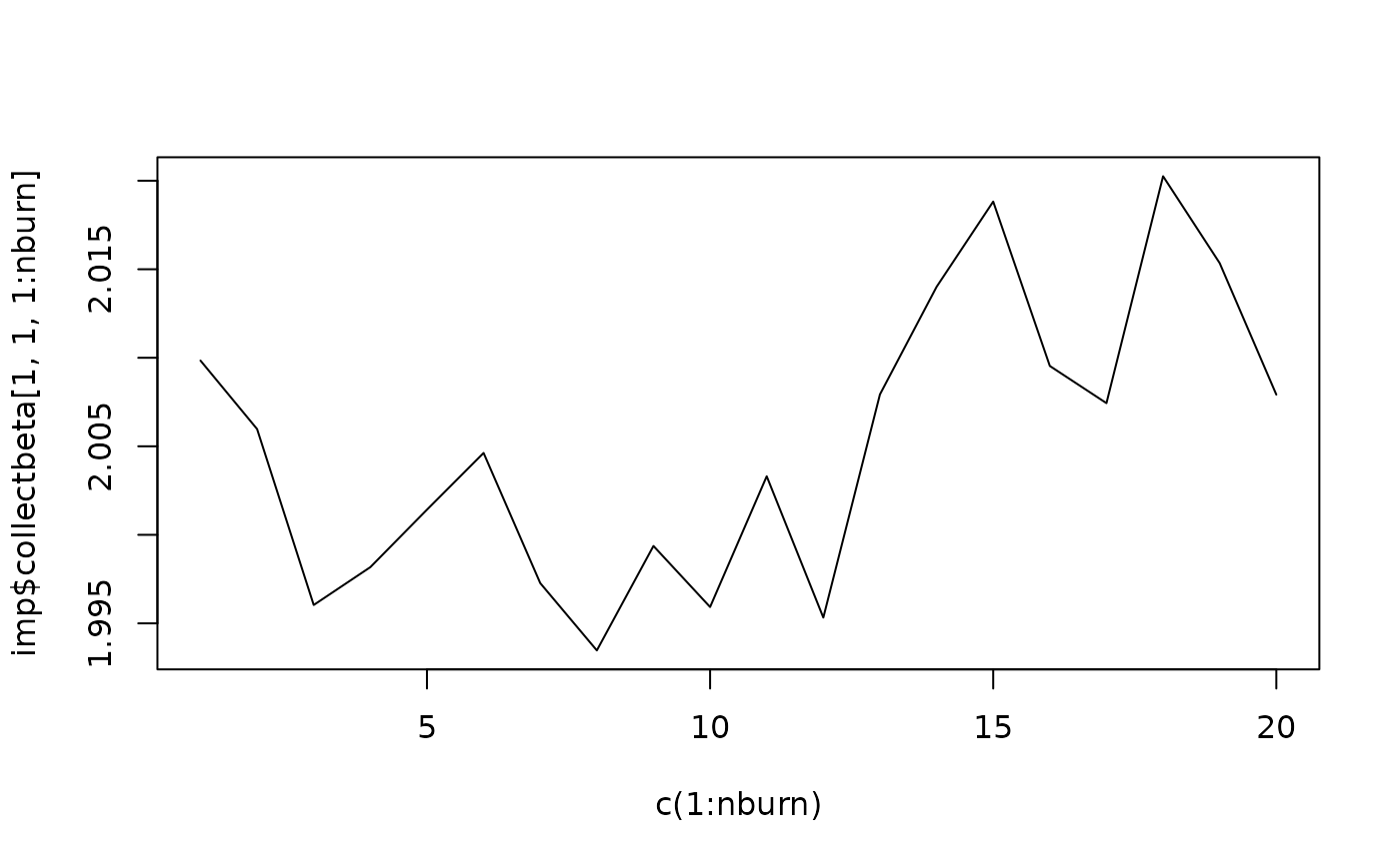 plot(c(1:nburn),imp$collectbeta[1,1,1:nburn],type="l")