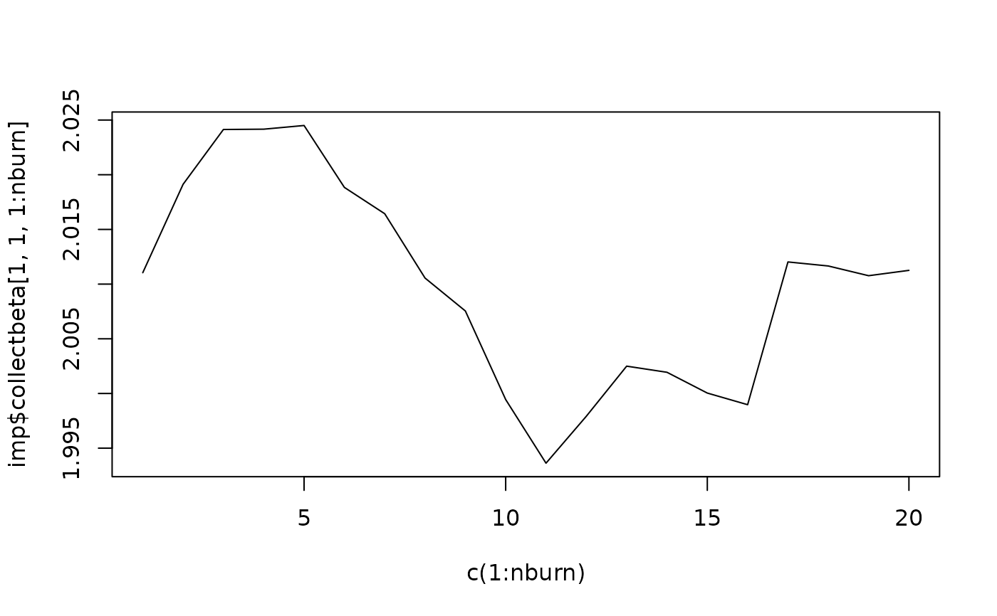 imp<-jomo2com.MCMCchain(Y.con=Y, Y2.cat=Y2, Y2.numcat=2, clus=clus,nburn=nburn)