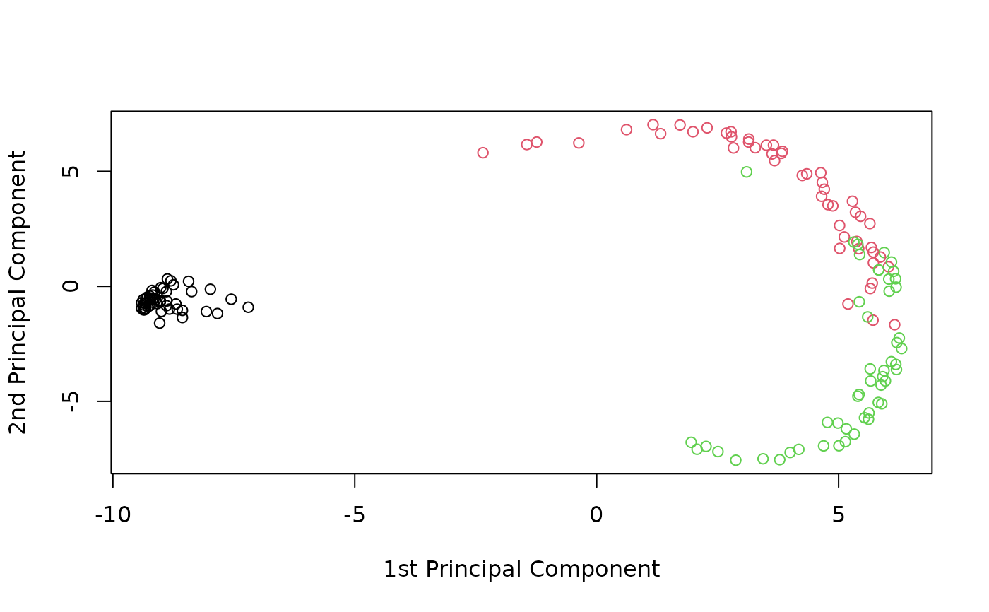 plot(rotated(kpc),col=as.integer(iris[-test,5]),