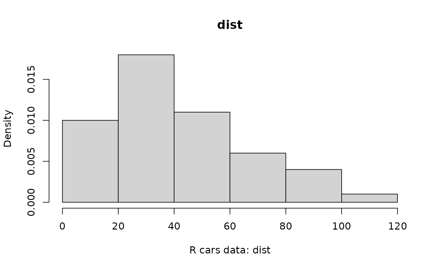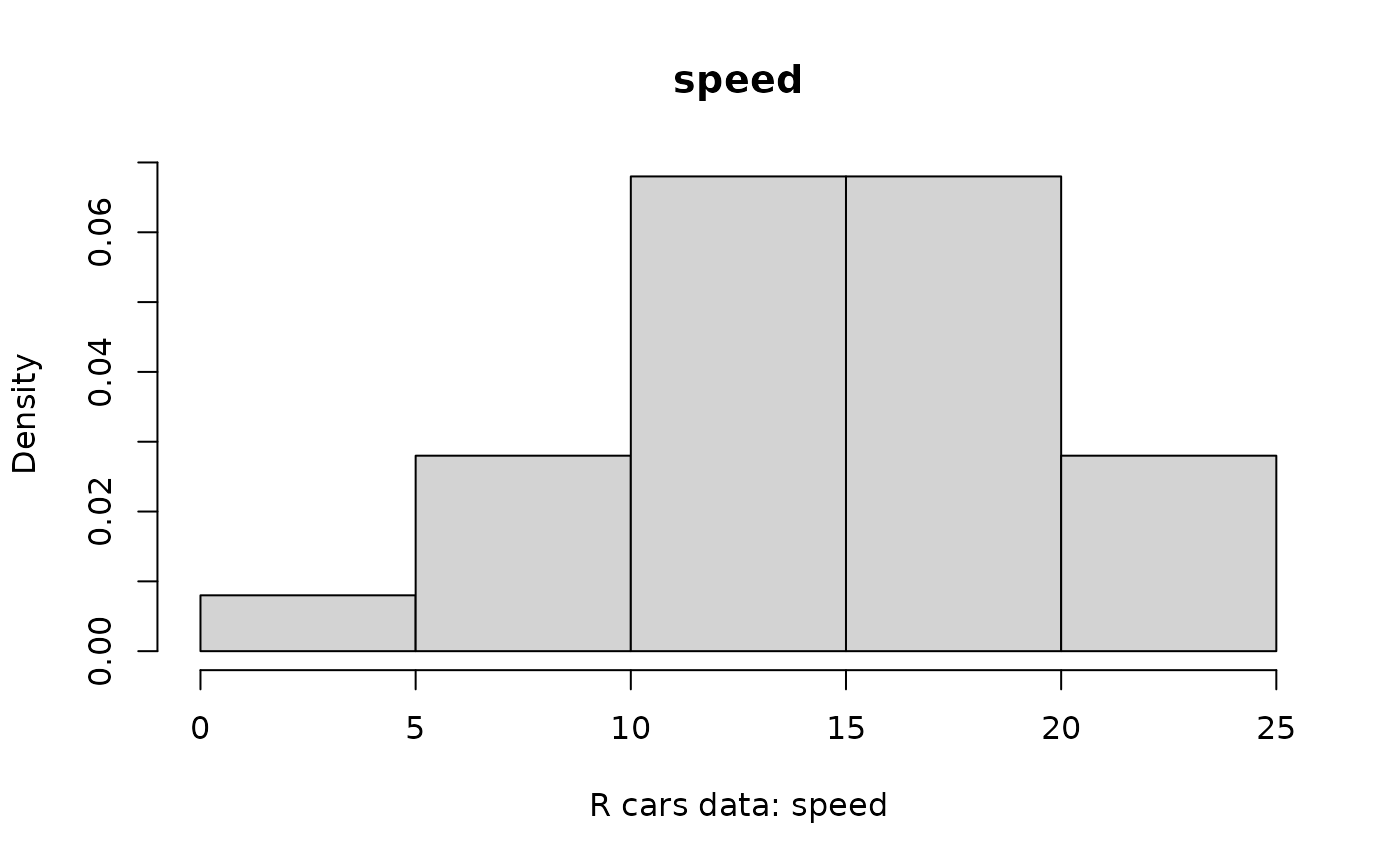 peek(cars, xlabstub = "R cars data: ")