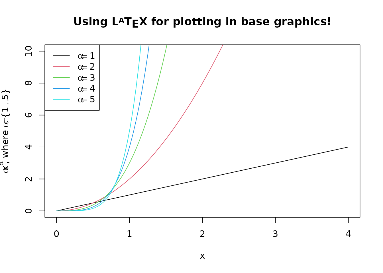 type='n', main=TeX(r'(Using $\LaTeX$ for plotting in base graphics!)', bold=TRUE))