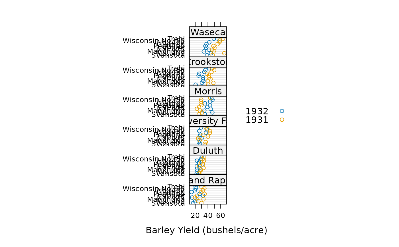 Wright, Kevin (2013). Revisiting Immer's Barley Data. The American Statistician, 67(3), 129–133.