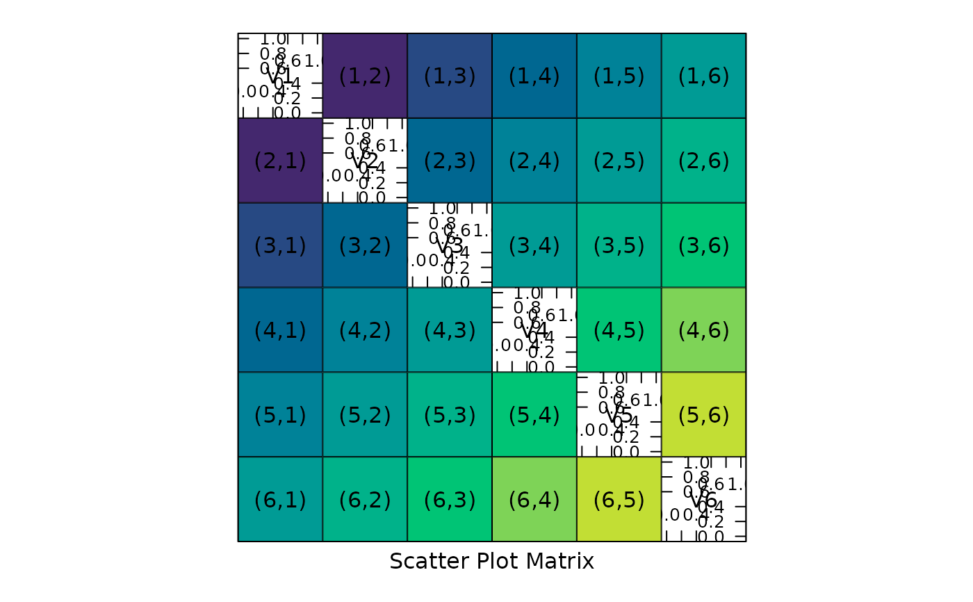 function(i,j) hcl.colors(11)[i+j-1]) ## rainbow(11, start=.12, end=.5)[i+j-1])