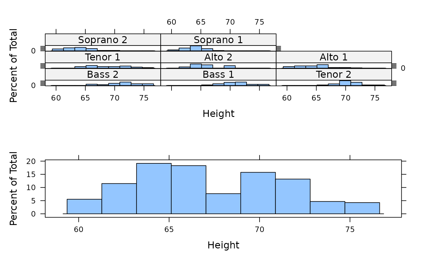 p11 <- histogram( ~ height | voice.part, data = singer, xlab="Height")