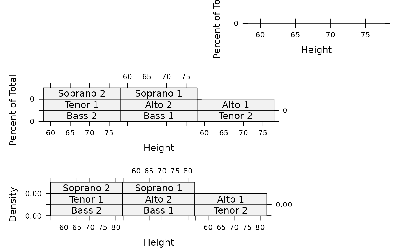 p2 <- histogram( ~ height, data = singer, xlab = "Height")