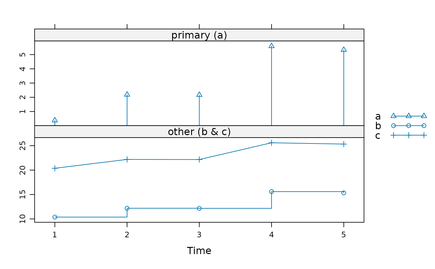 xyplot(z, screens = list(a = "primary (a)", "other (b & c)"),
