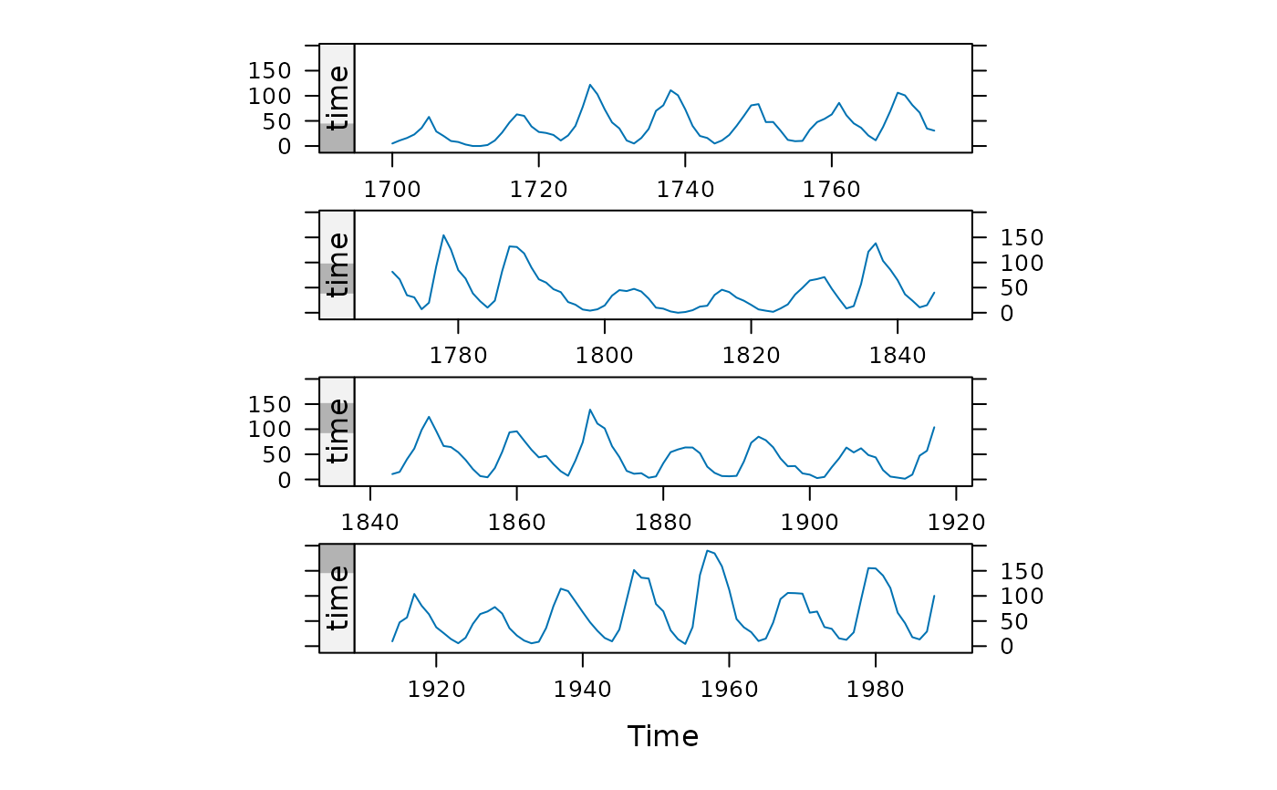 xyplot.ts.RdThis function handles time series plotting, including cut-and-stack plots. Examples are given of superposing, juxtaposing and styling different time series.