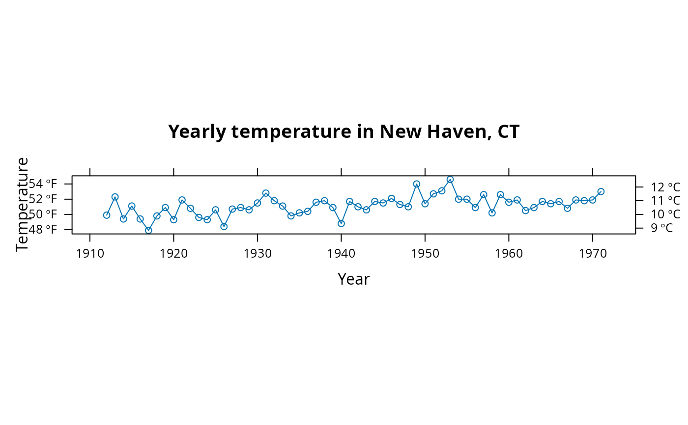 main = "Yearly temperature in New Haven, CT")