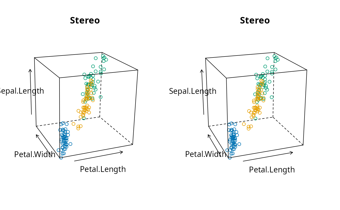 aspectis taken to be a numeric vector of length 2, giving the relative aspects of the y-size/x-size and z-size/x-size of the enclosing cube. The usual role of theaspectargument in determining the aspect ratio of the panel (seexyplotfor details) is played bypanel.aspect, except that it can only be a numeric value.For the