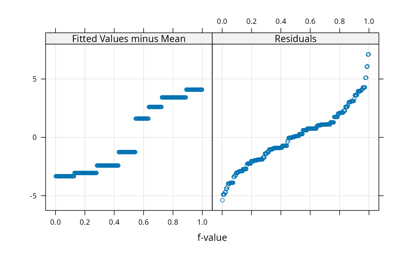 rfs(model, layout=c(2, 1), xlab="f-value", ylab=NULL,