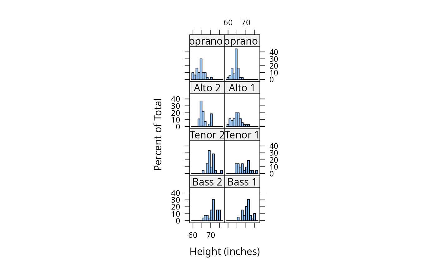 # Separate histogram for each voice part (Figure 1.2 from Cleveland)