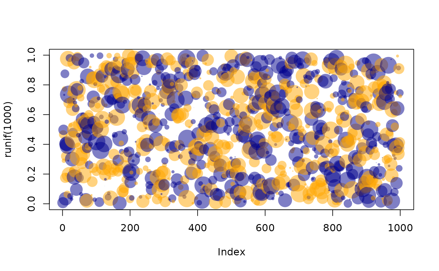 Col(col, alpha = 0.2, locate = 0)A character vector with elements of 7 or 9 characters, `#` followed by the red, blue, green and optionally alpha values in hexadecimal (after rescaling to '0 ... 255').