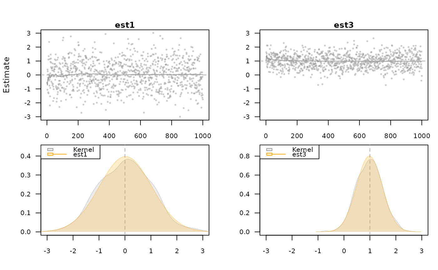 plot.sim(val,estimate=c(1,2,3),equal=TRUE,byrow=TRUE,scatter.plot=TRUE)