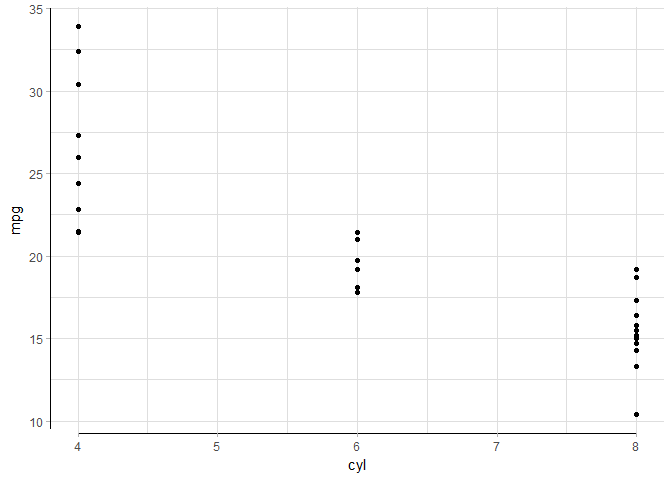 ggplot(mtcars, aes(x=cyl, y=mpg)) +