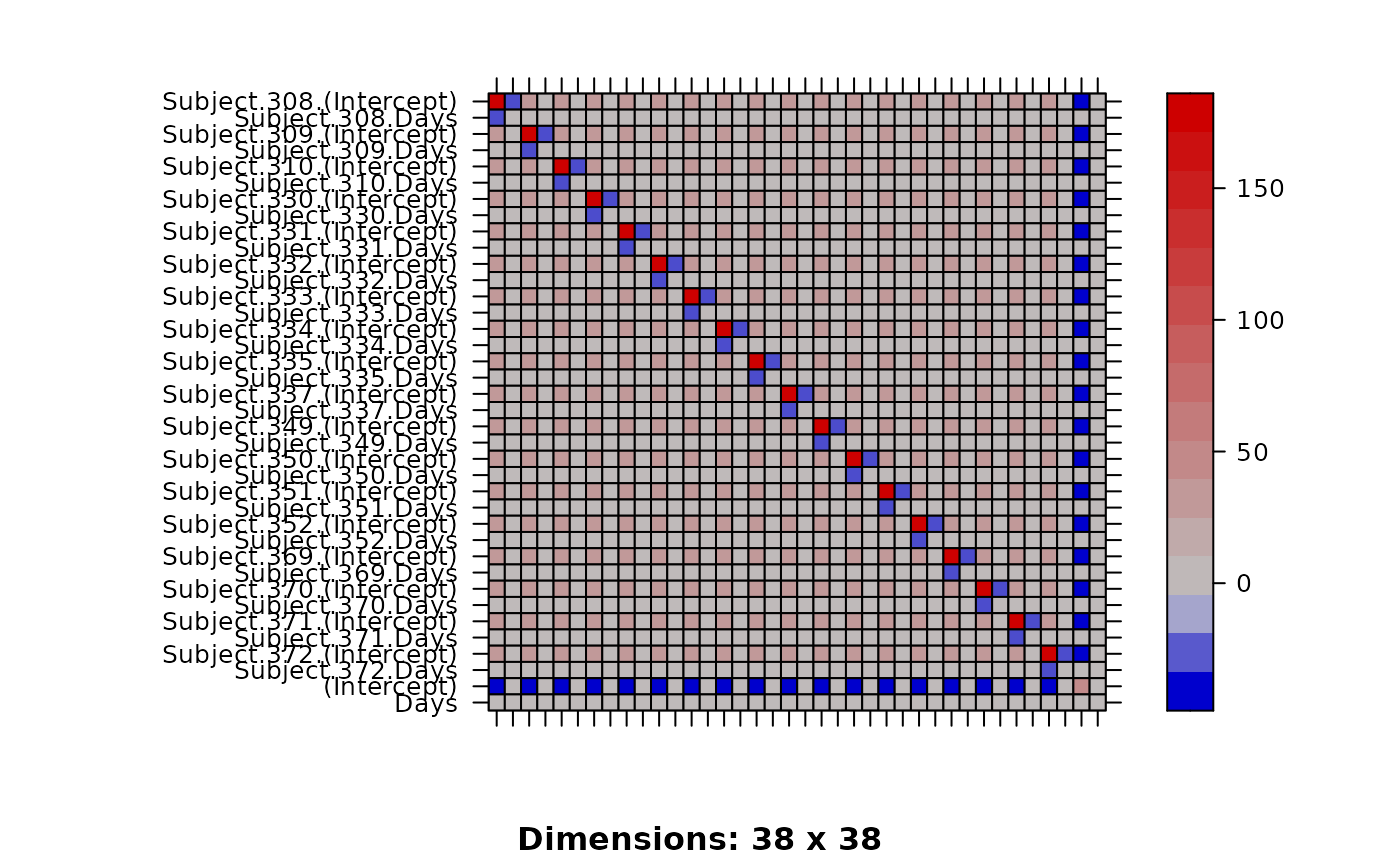 vcov.merMod.RdCompute the variance-covariance matrix of estimated paramers. Optionally also computes correlations, or the full (joint) covariance matrix of the fixed-effect coefficients and the conditional modes of the random effects.