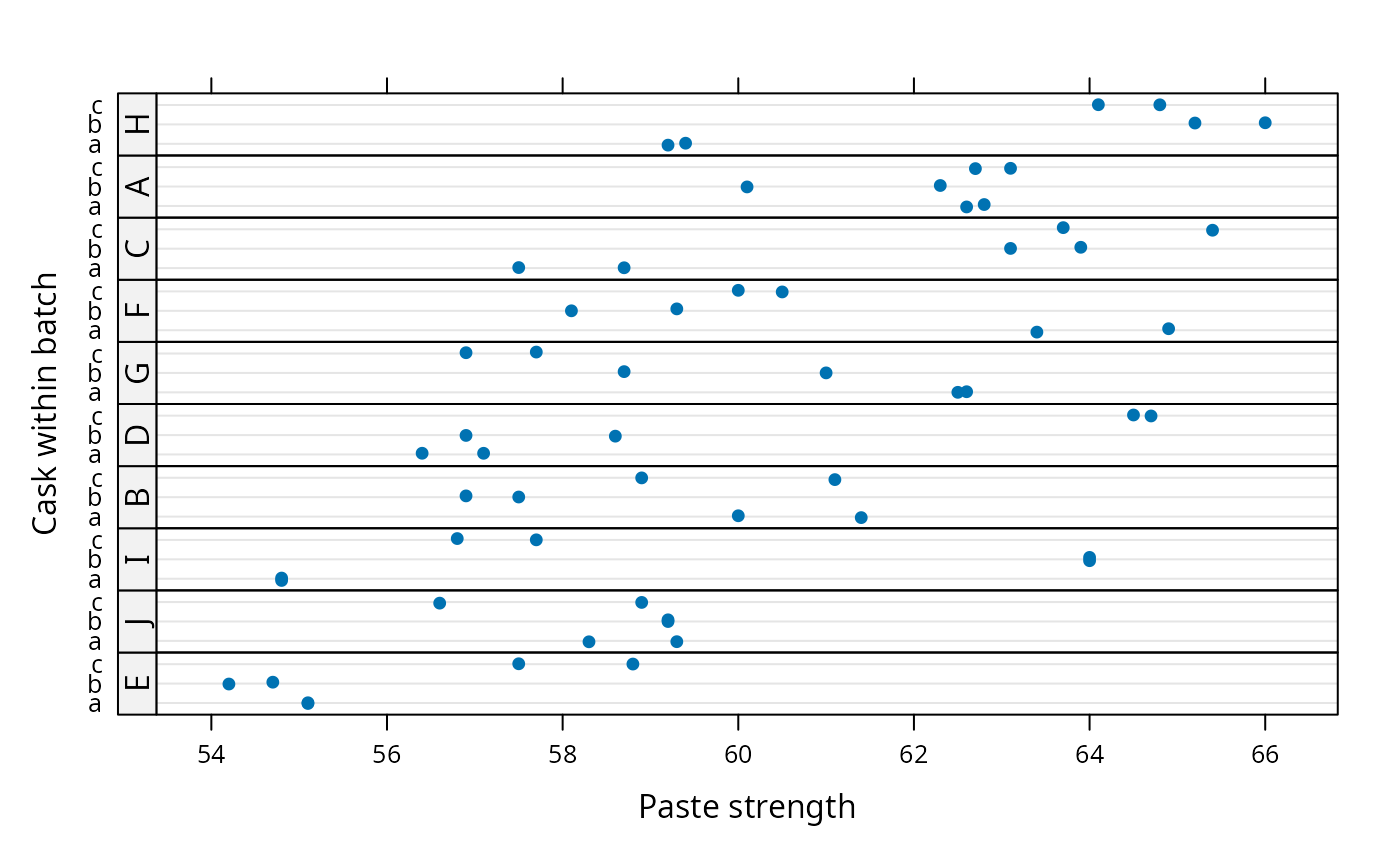 #> $ cask : Factor w/ 3 levels "a","b","c": 1 1 2 2 3 3 1 1 2 2 ...