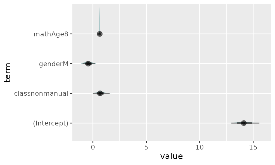 lmer_par_boot <- bootstrap(vcmodA, .f = fixef, type = "parametric", B = 100)