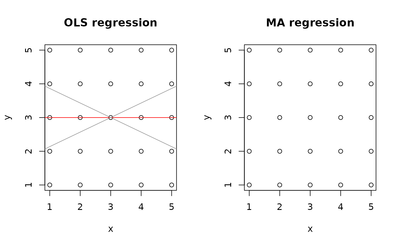 #> Angle between the two OLS regression lines = 90 degrees