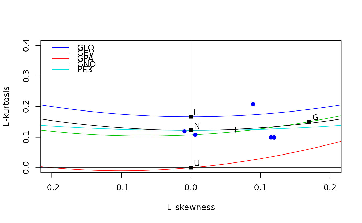 lmrdpoints(lmom.monthly, pch=19, col="blue")