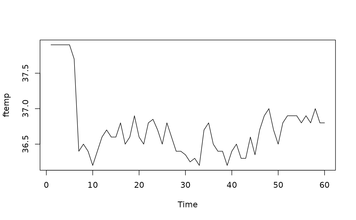 data(ftemp)Univariate daily time series of 60 observations starting from 1990-07-11.