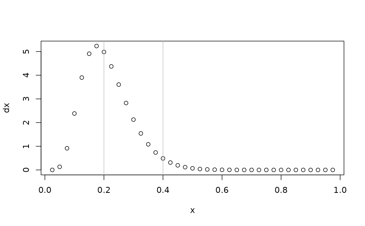 x <- seq(0,1,length.out = 41)[-c(1,41)] # plotting grid