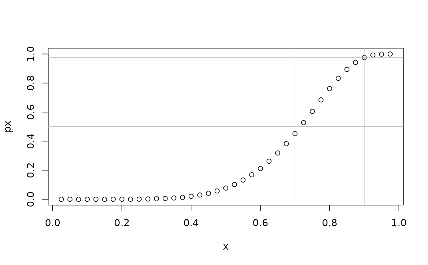 plot(px~x); abline(v = c(0.7,0.9),col = "gray"); abline(h = c(0.5,0.975),col = "gray")
