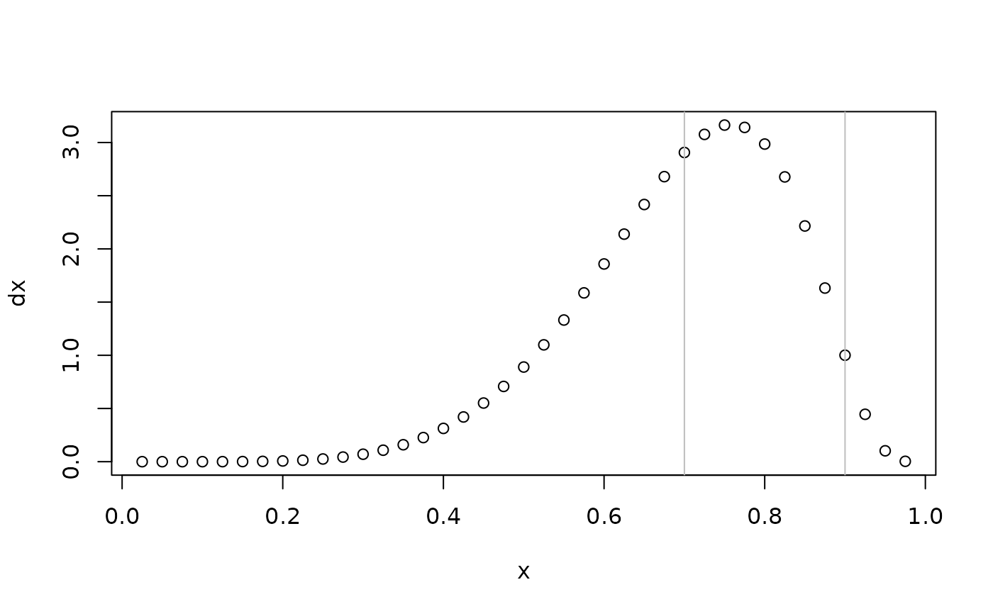 plot(dx~x); abline(v = c(0.7,0.9),col = "gray")