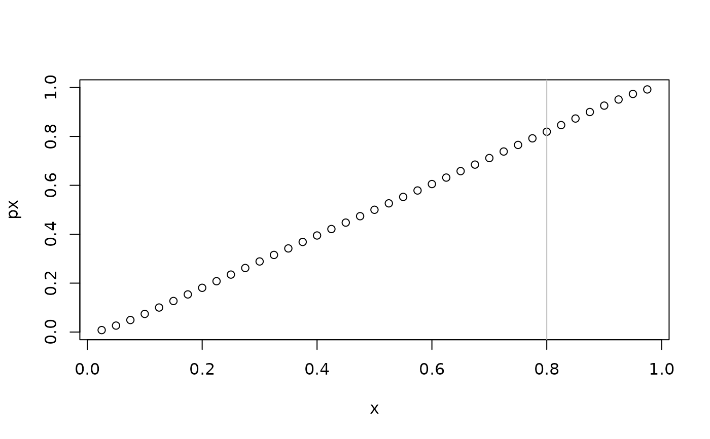 px <- plogitnorm(x,mu = theta[1],sigma = theta[2]) #percentiles function