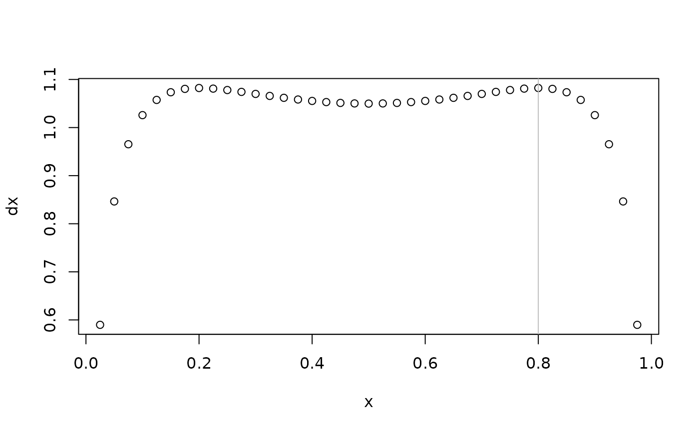 x <- seq(0,1,length.out = 41)[-c(1,41)] # plotting grid