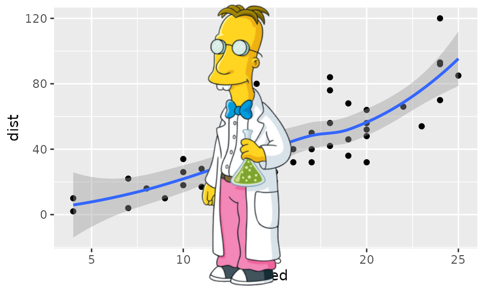 image_write(animation, "gapminder.gif")Magick images can also be converted to raster objects for use with R’s graphics device. Thereby we can combine it with other graphics tools. However do note that R’s graphics device is very slow and has a very different coordinate system which reduces the quality of the image.