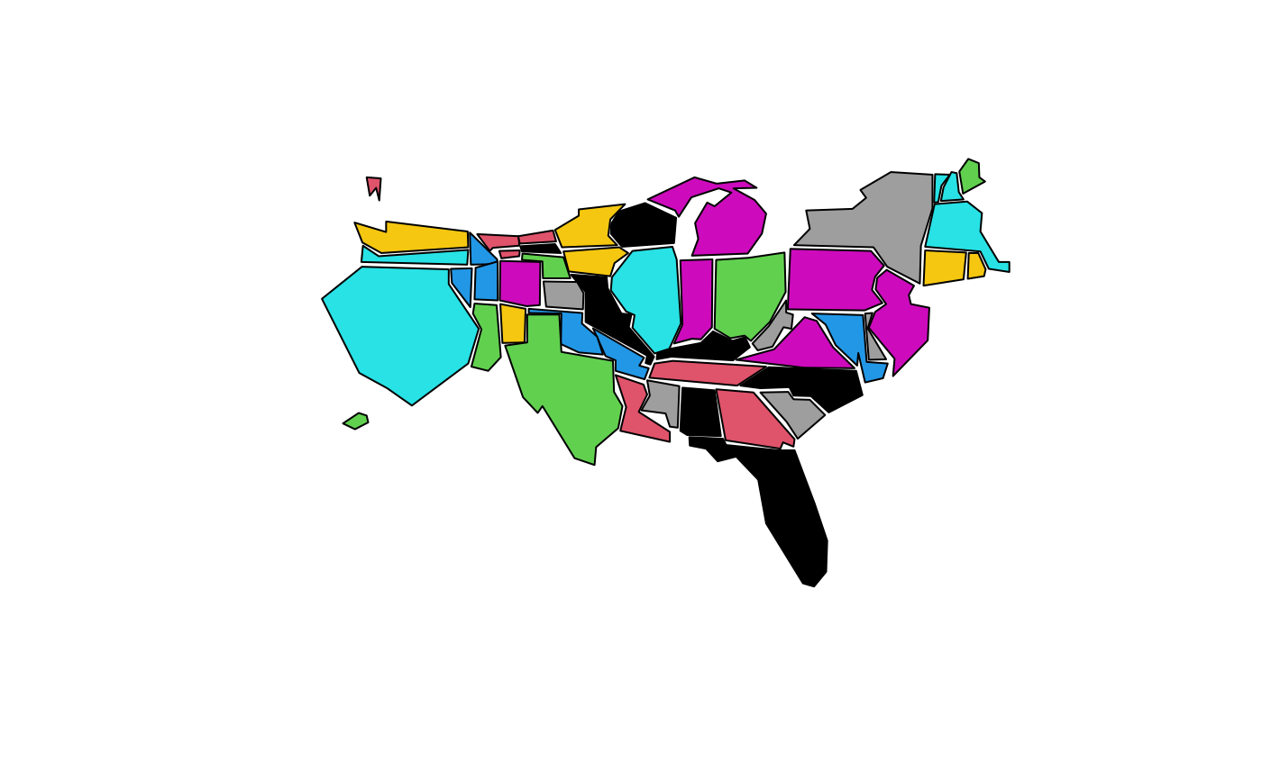 state.carto.RdThis database produces a cartogram of the states of the United States mainland based on CartoDraw, roughly proportional to population (see references).