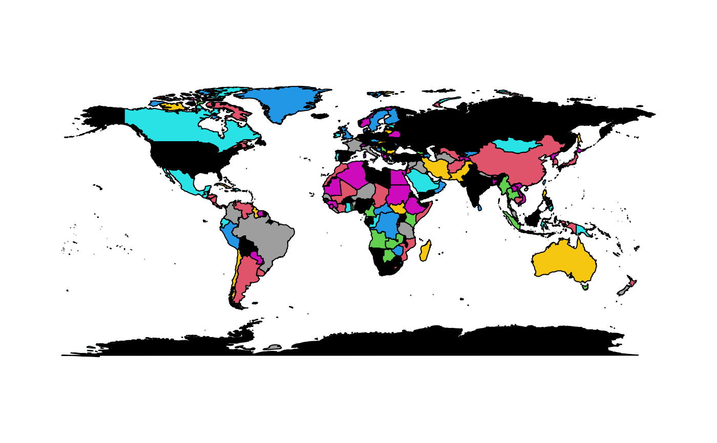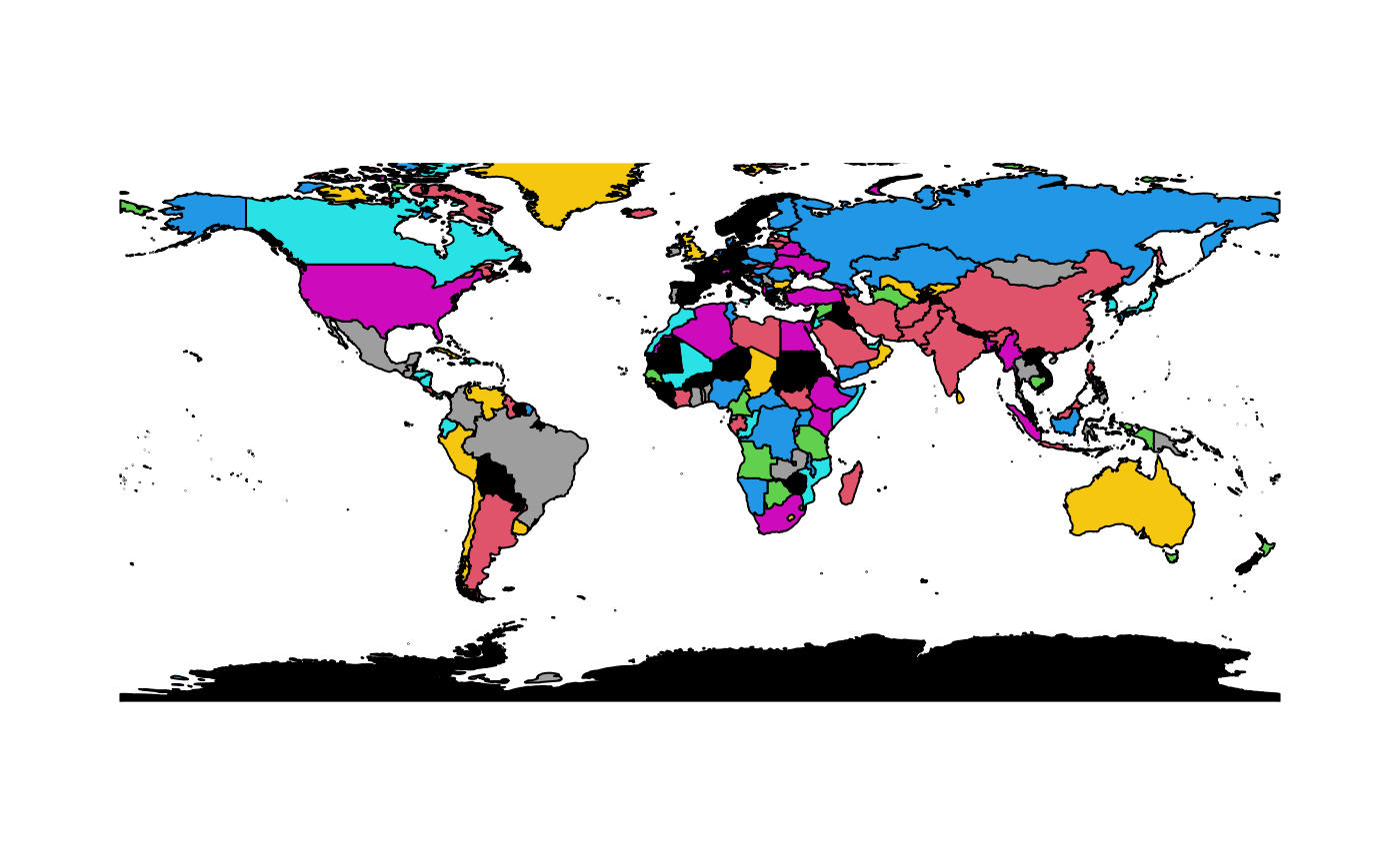 world.RdThis world map (updated in 2013) is imported from the public domain Natural Earth project (the 1:50m resolution version). It replaces a much older version based on the CIA World Data Bank II data.
