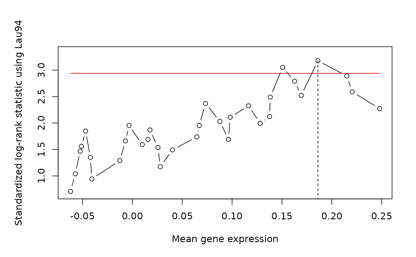 #> Maximally selected LogRank statistics using Lau94