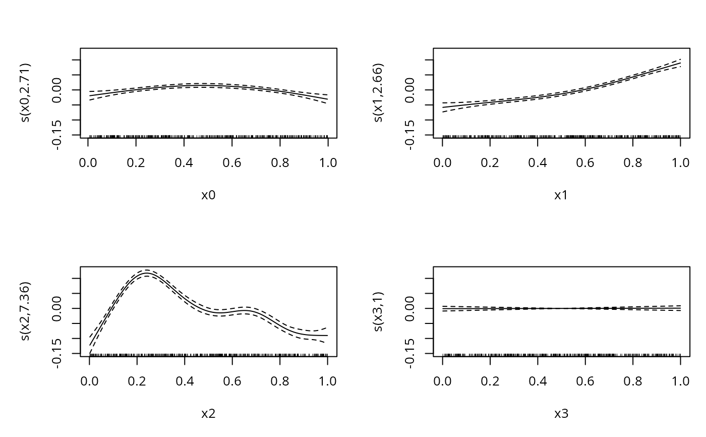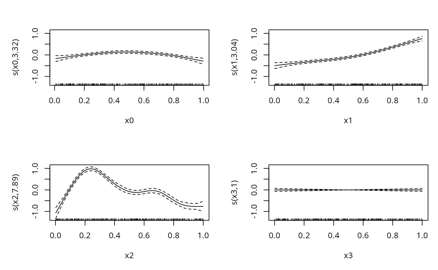 #> y ~ s(x0) + s(x1) + s(x2) + s(x3)