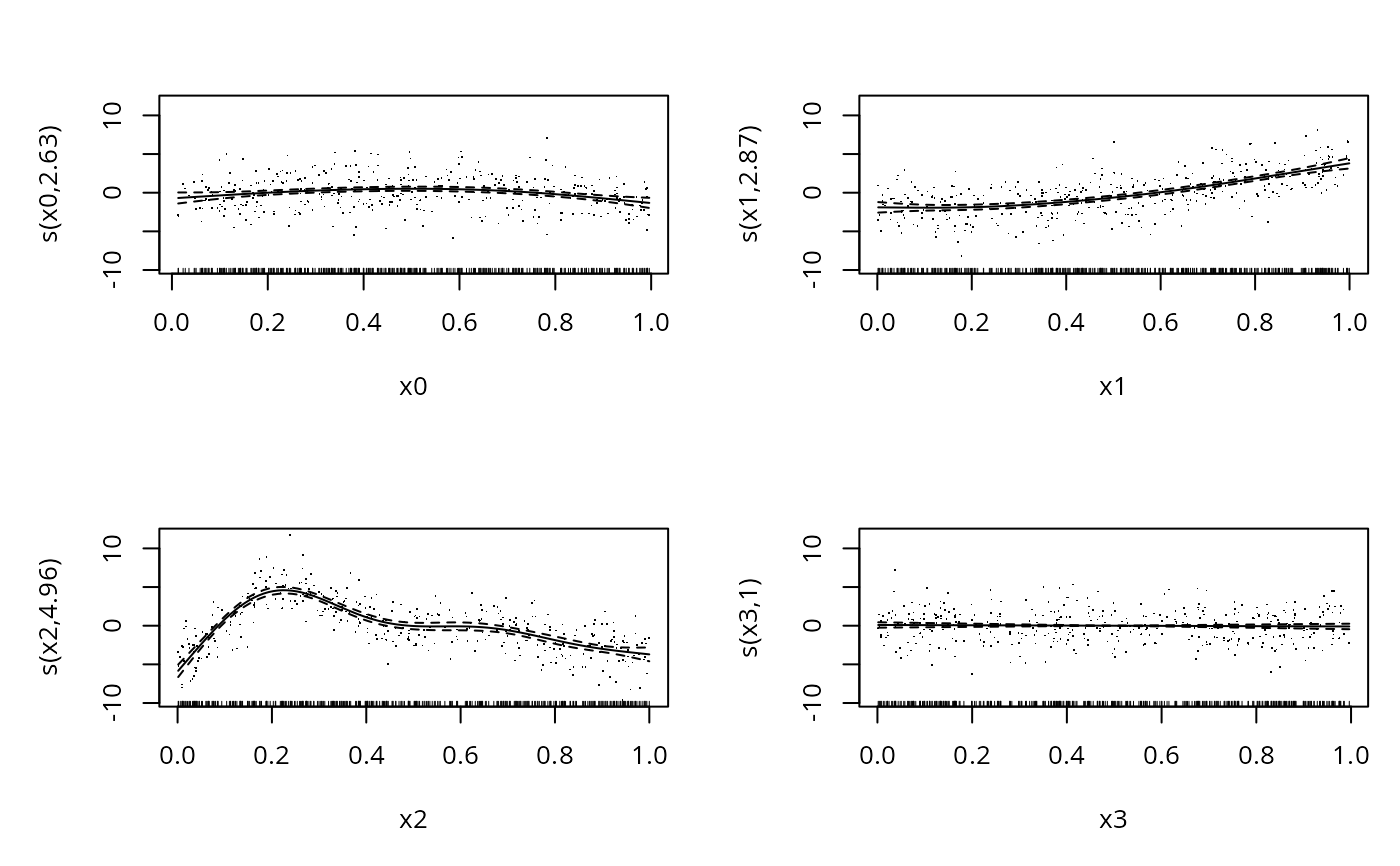 b <- gam(y~s(x0,k=6)+s(x1,k=6)+s(x2,k=12)+s(x3,k=6),