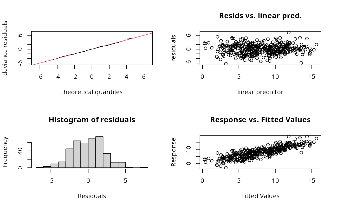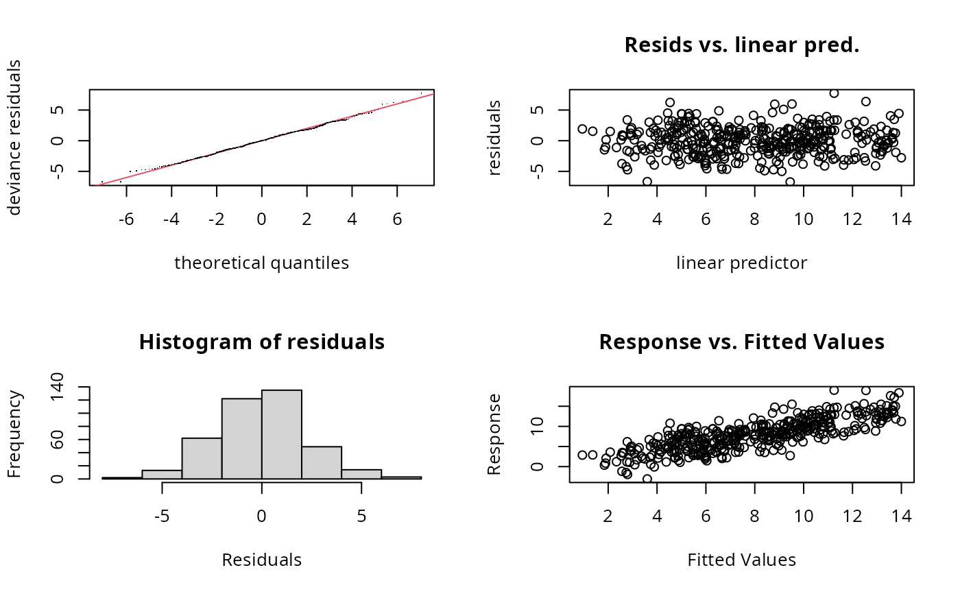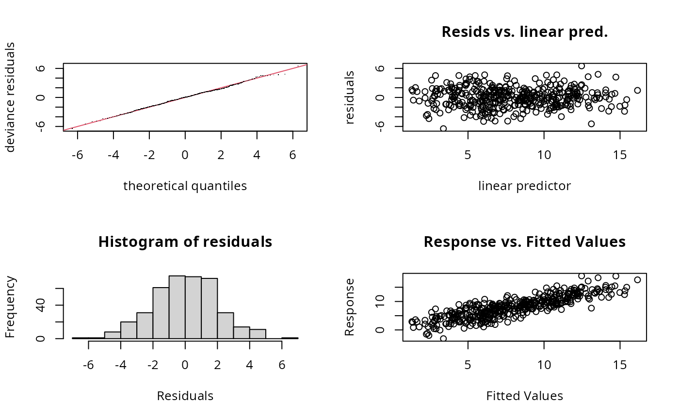 #> y ~ s(x0, k = 6) + s(x1, k = 6) + s(x2, k = 6) + s(x3, k = 6)