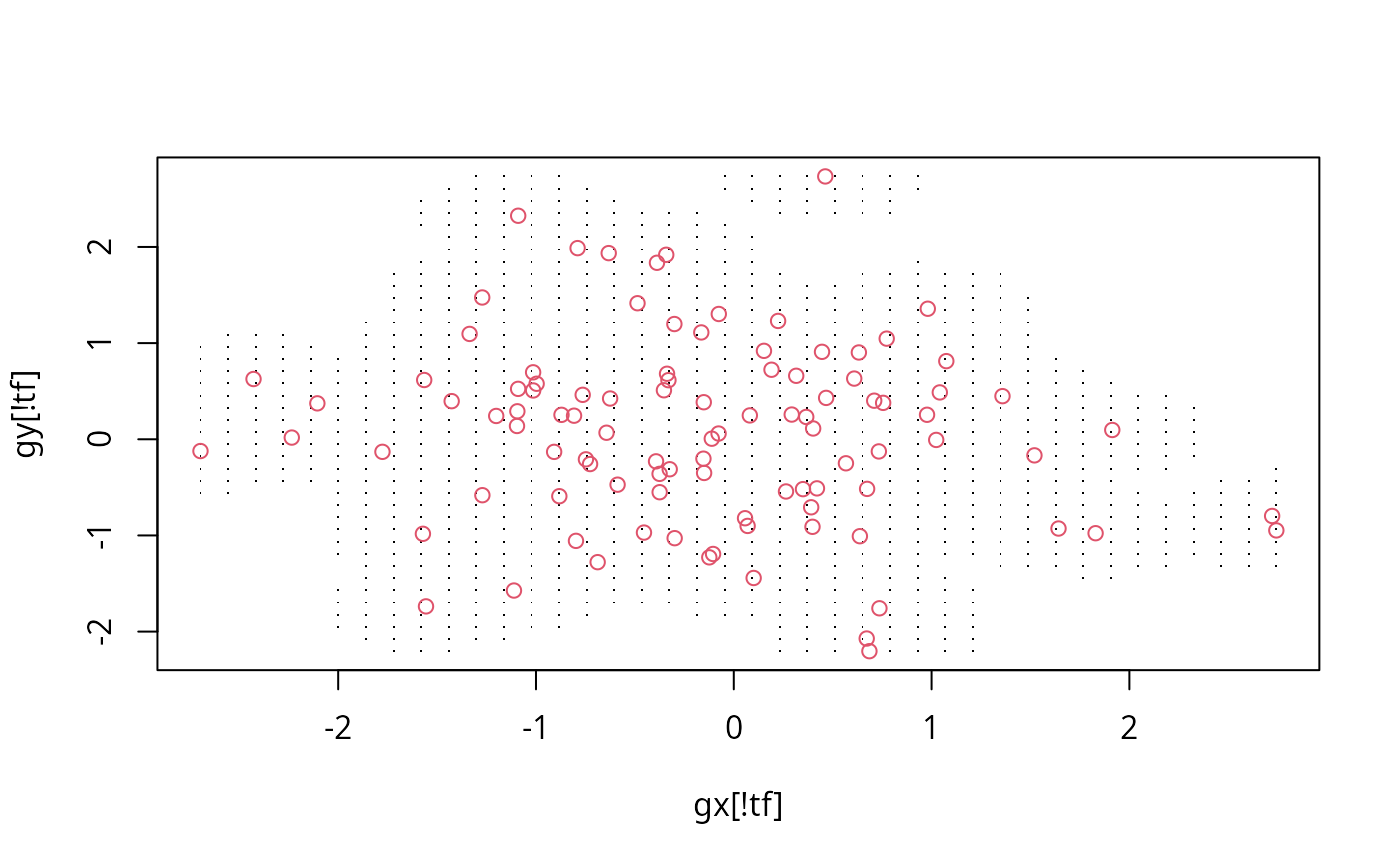 defining the location of data in that space, and returns a logical vector with elements TRUE if