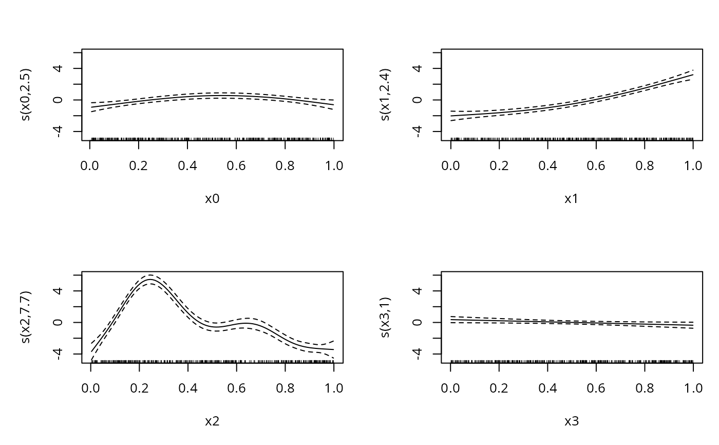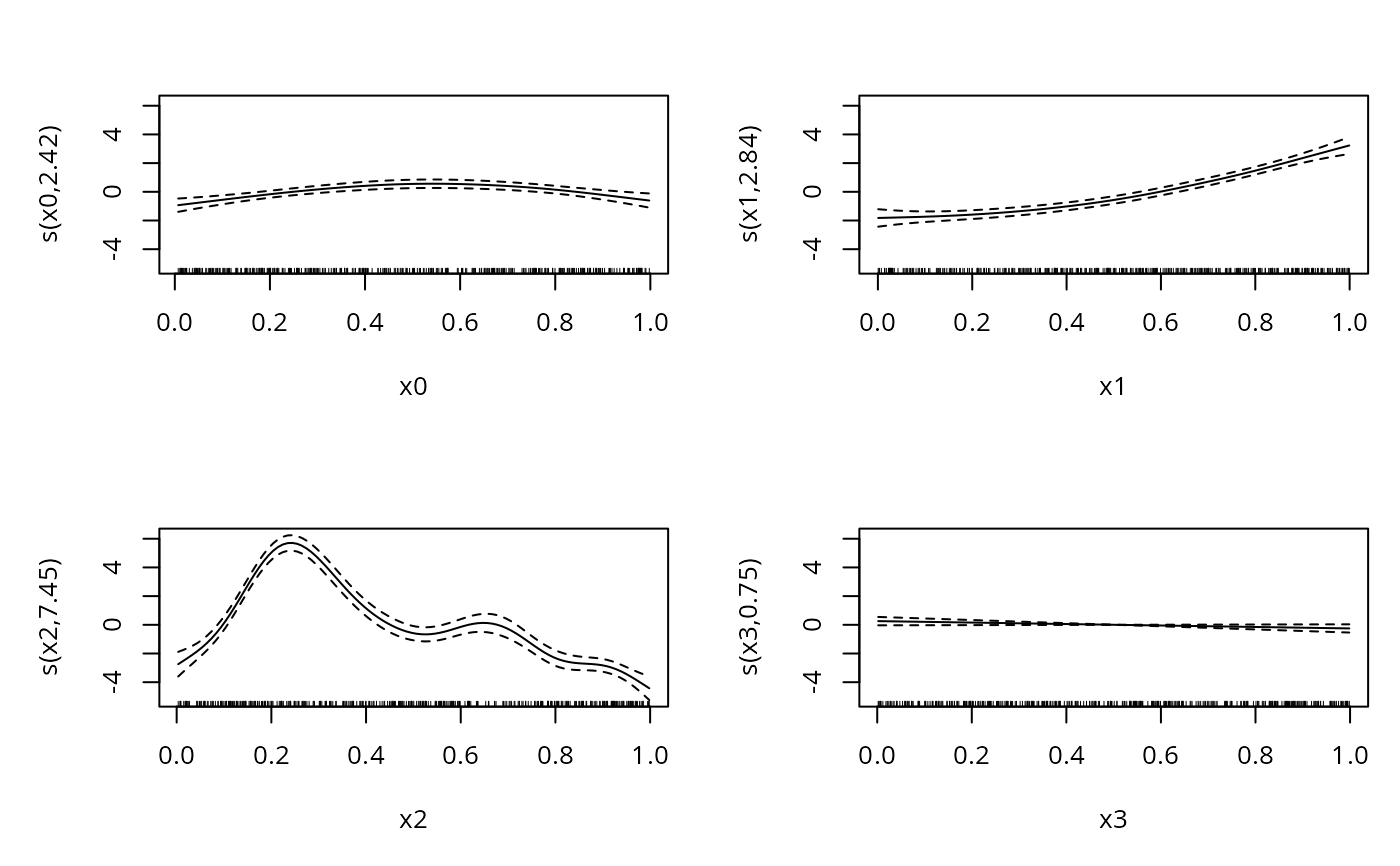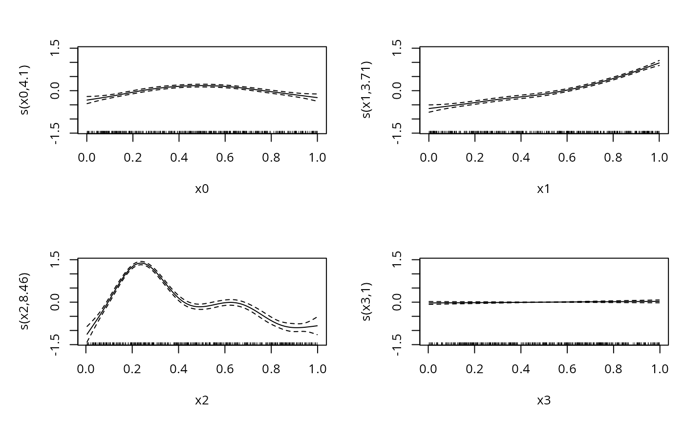 bp <- gam(y~s(x0,sp=.01)+s(x1)+s(x2)+s(x3),data=dat)