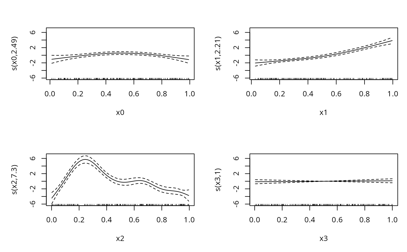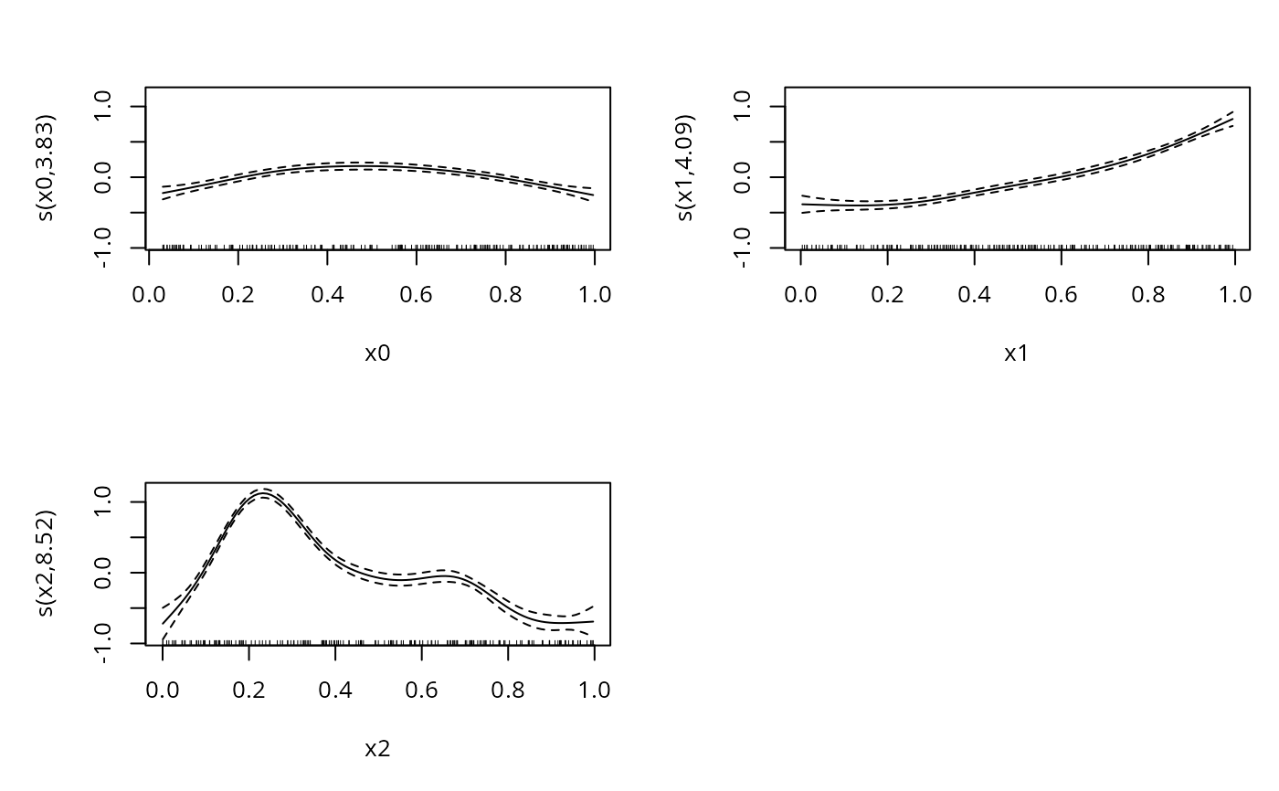 #> y ~ s(x0, bs = "cr") + s(x1, bs = "cr") + s(x2, bs = "cr") +