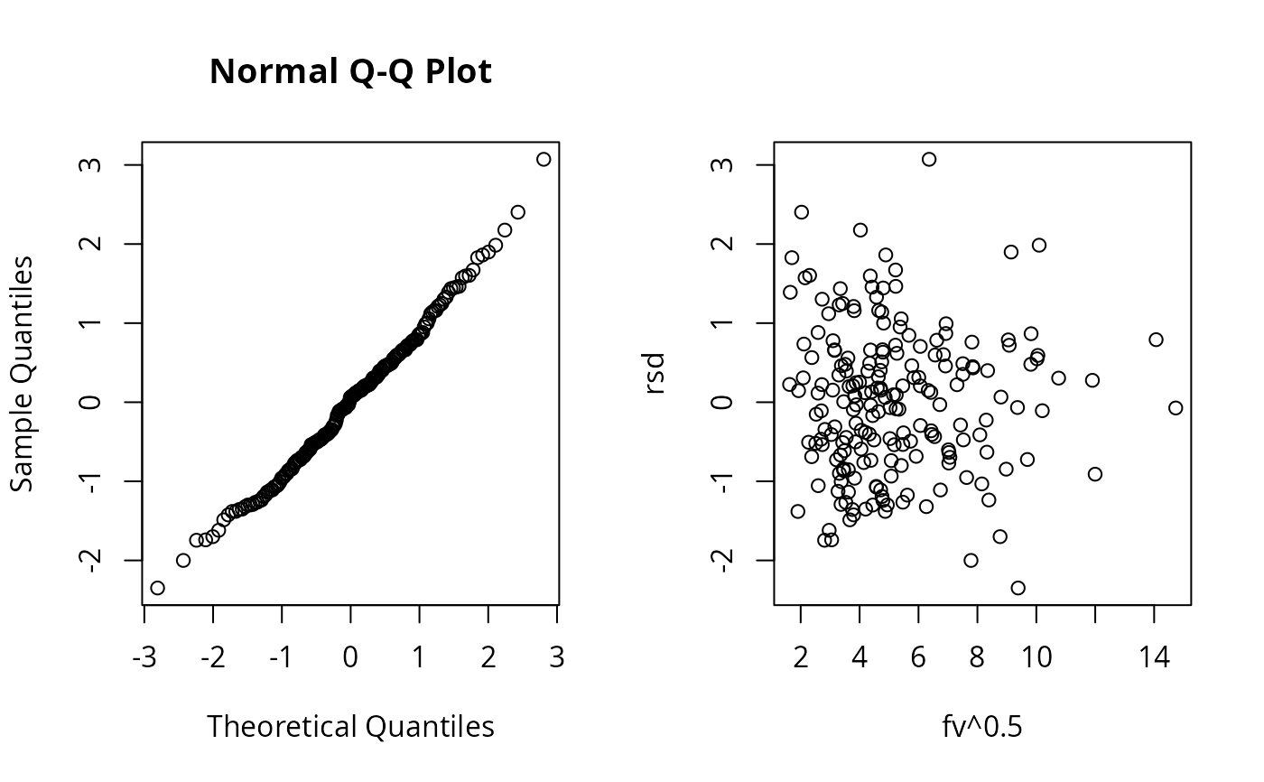 qqnorm(rsd);plot(fv^.5,rsd)