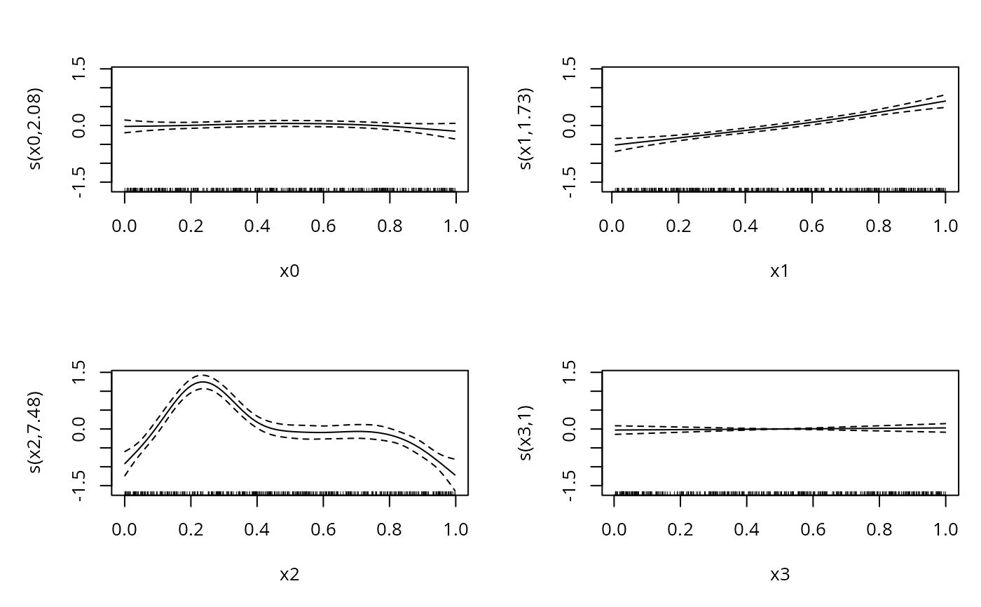 #> y ~ s(x0) + s(x1) + s(x2) + s(x3)