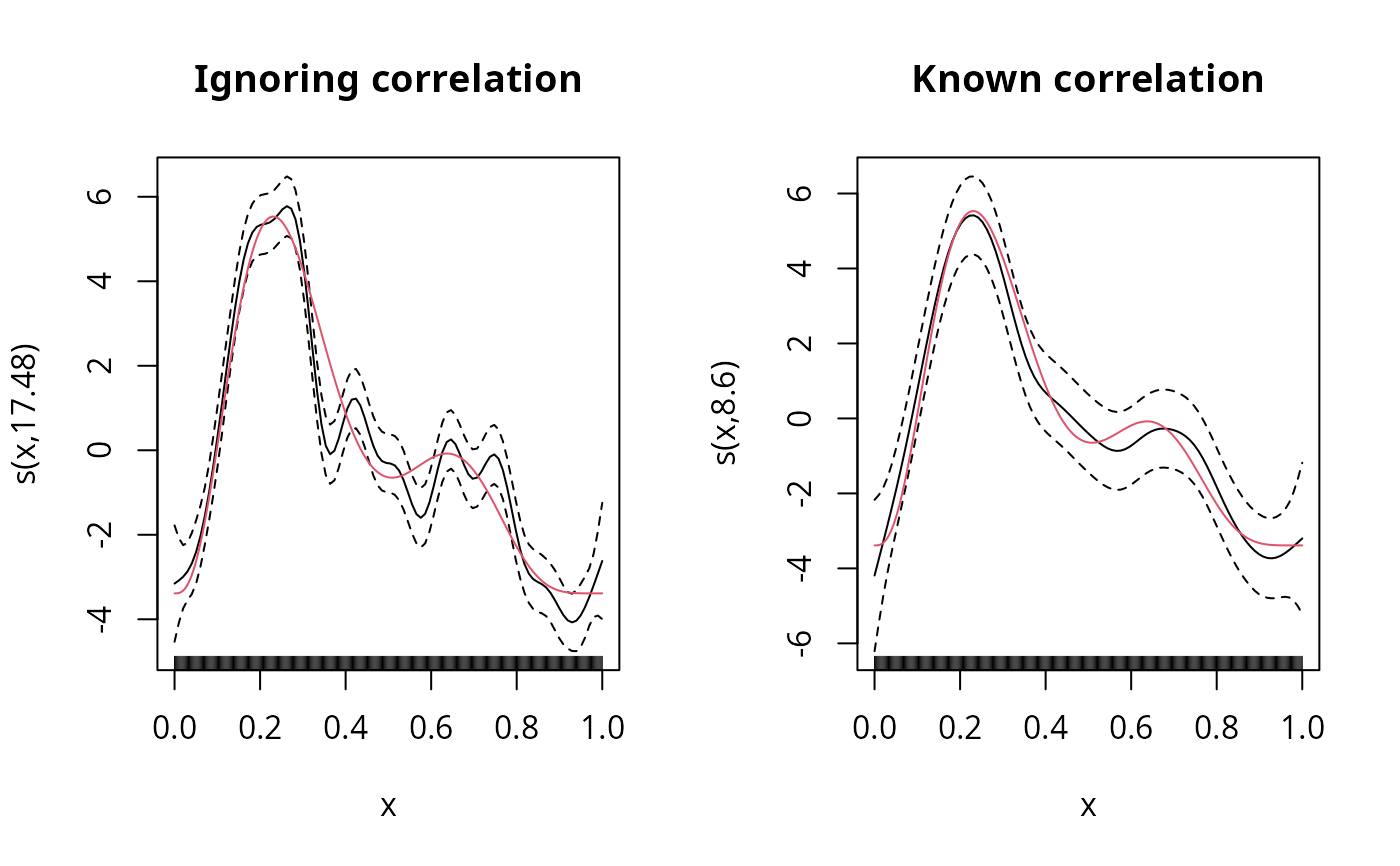 ## Fit smooth, taking account of *known* correlation...