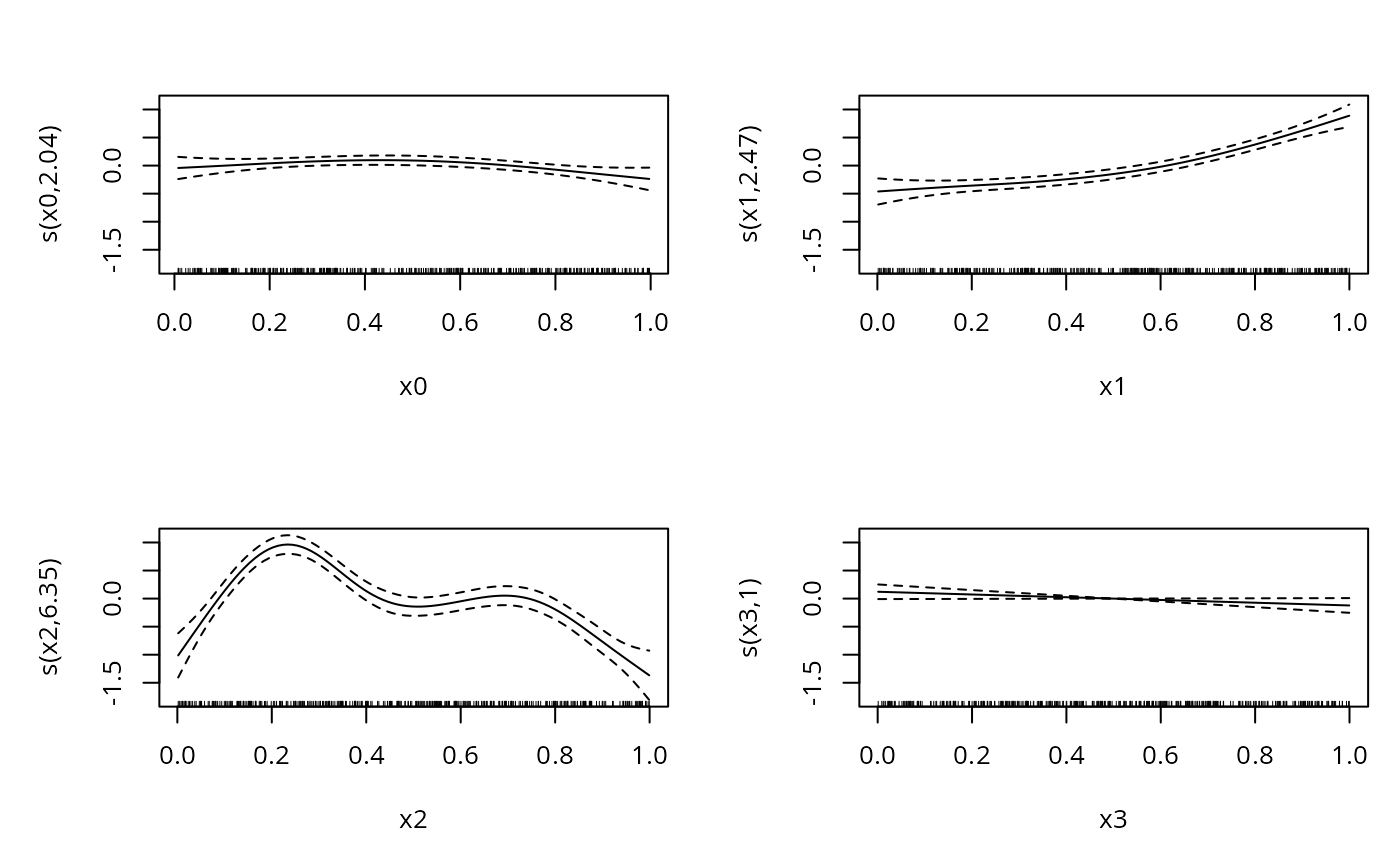 #> y ~ s(x0) + s(x1) + s(x2) + s(x3)