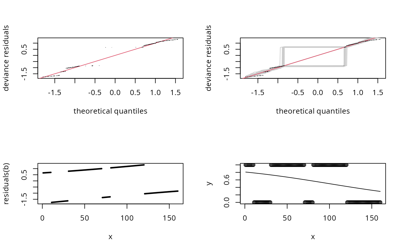 The plots are very similar to those proposed in Ben and Yohai (2004), but are substantially cheaper to produce (the interpretation of residuals for binary data in Ben and Yohai is not recommended).