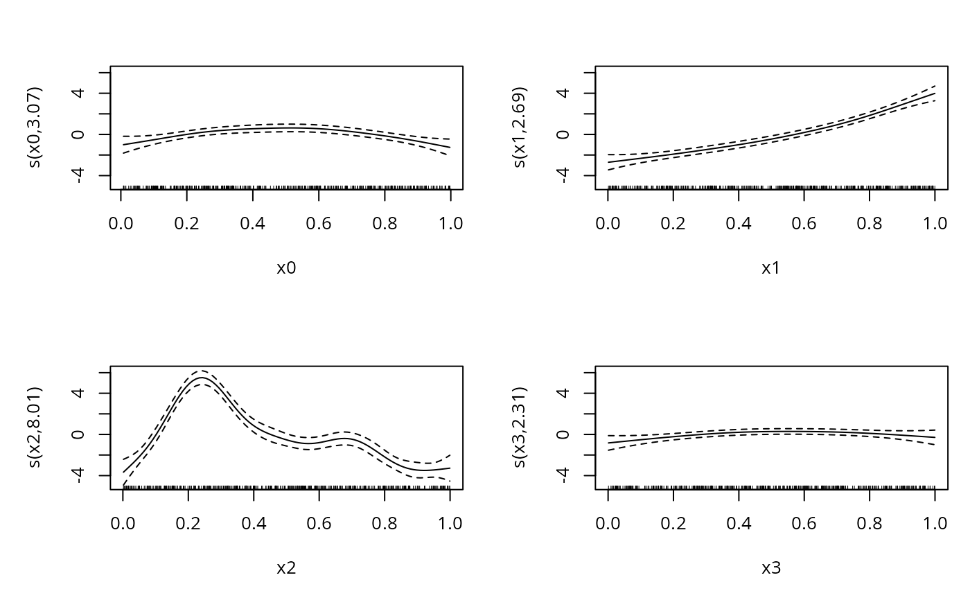 #> y ~ s(x0) + s(x1) + s(x2) + s(x3)