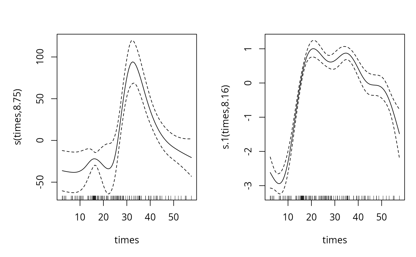 b <- gam(list(accel~s(times, k=20, bs = "ad"), ~s(times, k = 10), ~1, ~1),